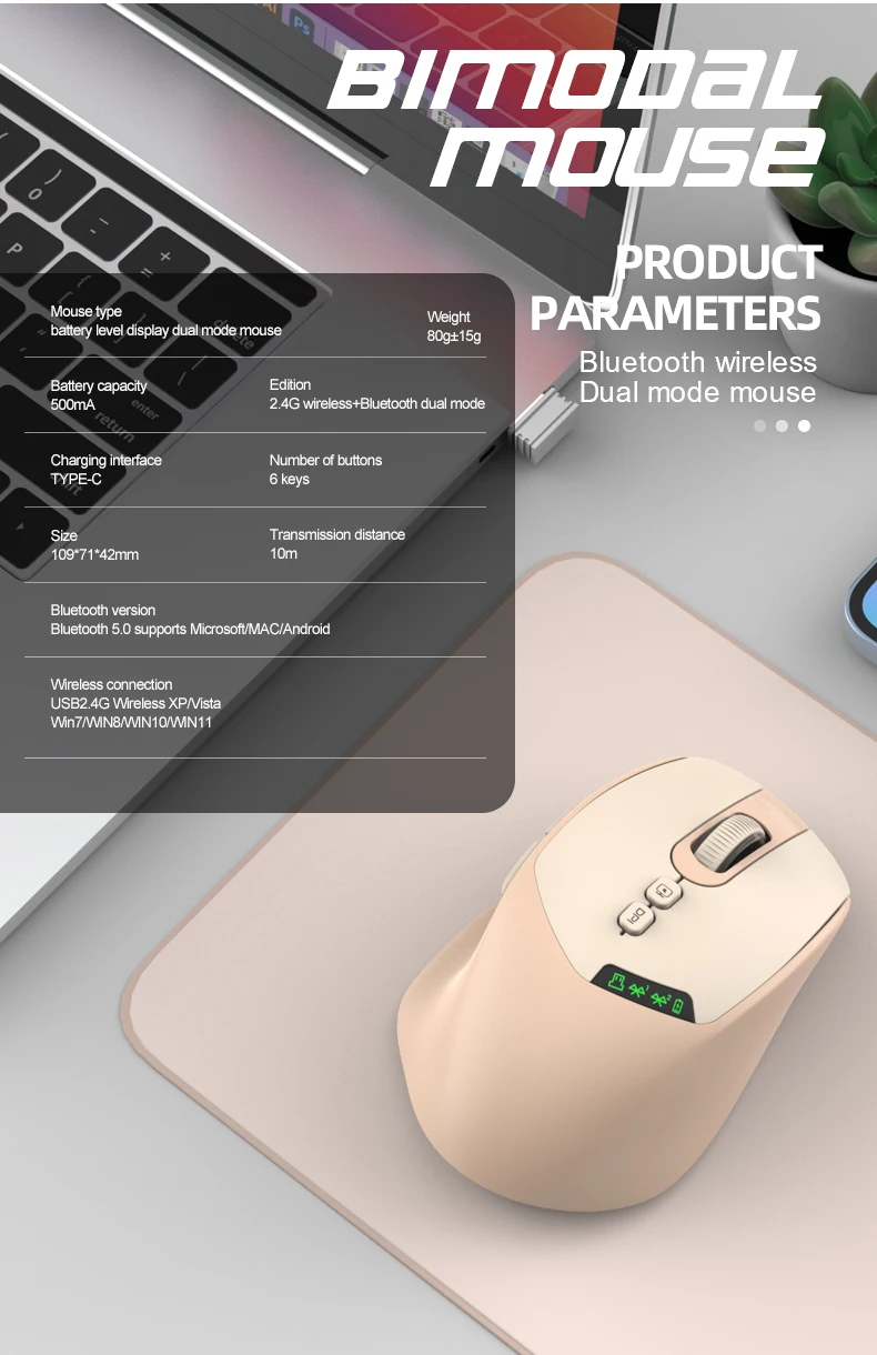 1. Dual – mode Connection: Supports Bluetooth 5.0 and 2.4G wireless connection, compatible with multiple systems such as Windows, Mac, iOS, and Android, breaking free from cable constraints.